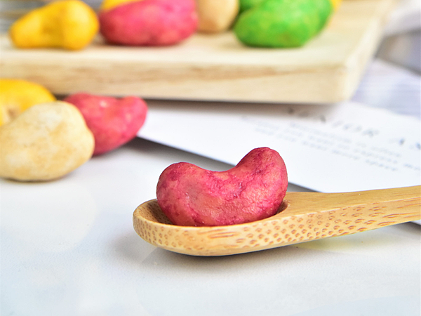 然後是與紫薯腰果很像的草莓腰果!說到草莓無人不愛~瞧它紅通通的外衣,是不是也覺得甜蜜可口呢?!草莓腰果嚐起來甜中帶一點酸~好滋味讓大人小孩都陶醉!